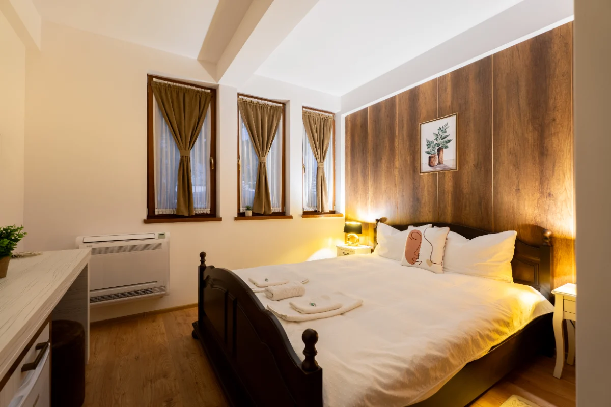 Fiecare unitate e dotată cu saltele de calitate superioară, mobilier elegant și izolare fonică atent realizată, ca tu să te bucuri de somnul binemeritat după o zi de explorare. Amenajările includ aer condiționat, televizor cu ecran plat și minibar, perfecte pentru confortul tău modern.